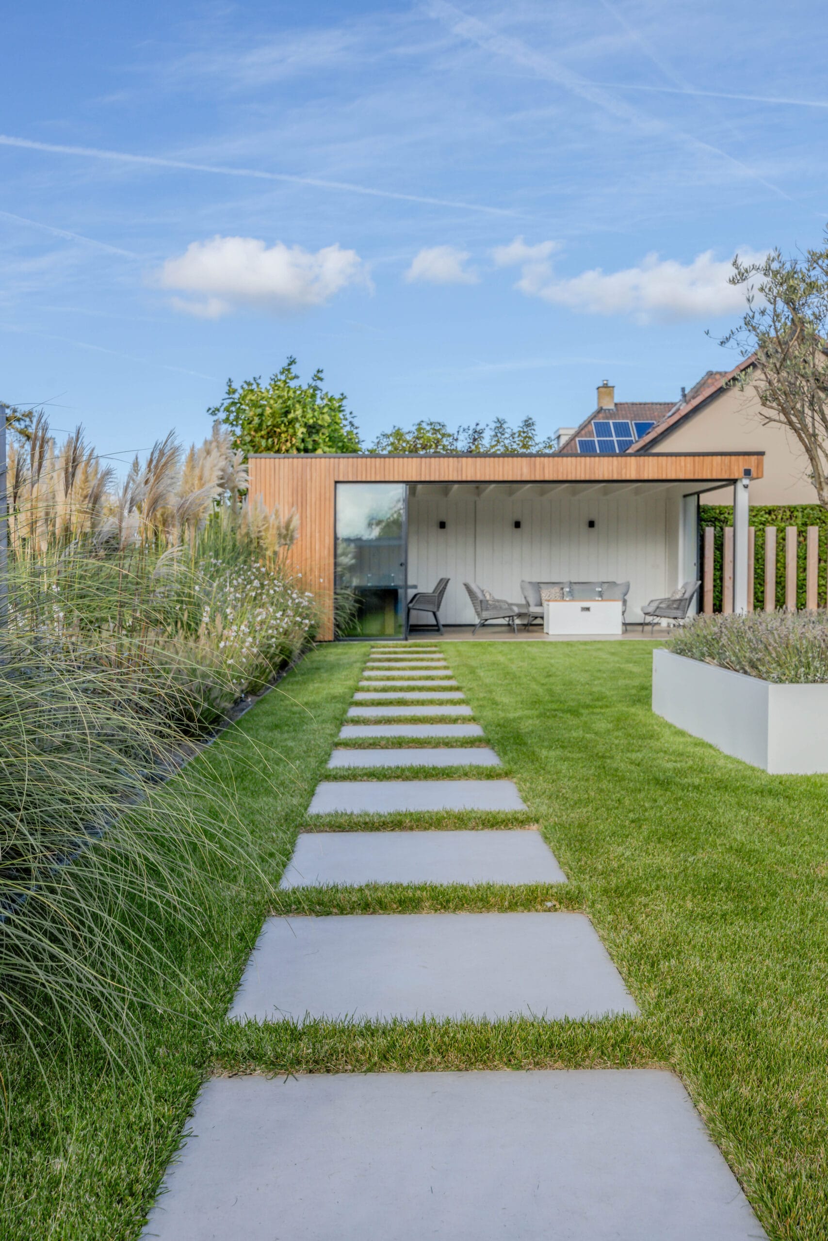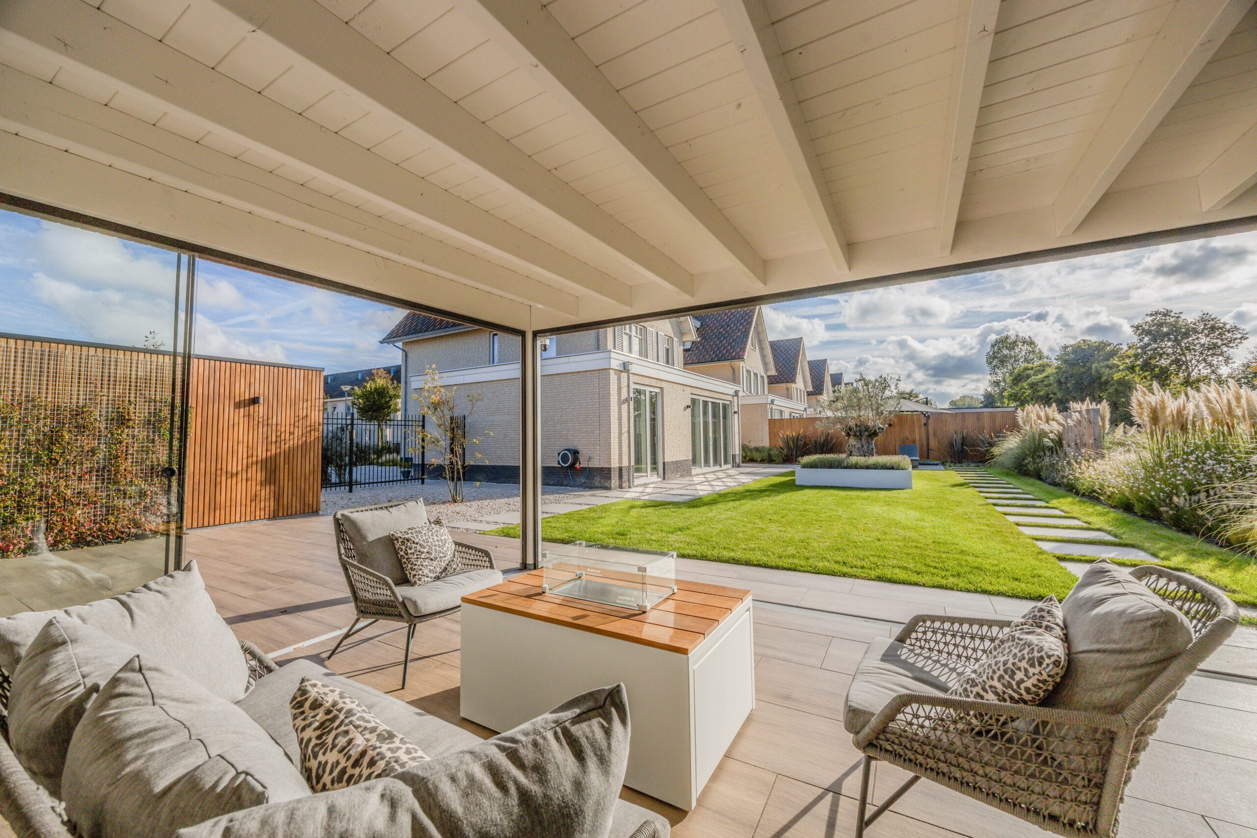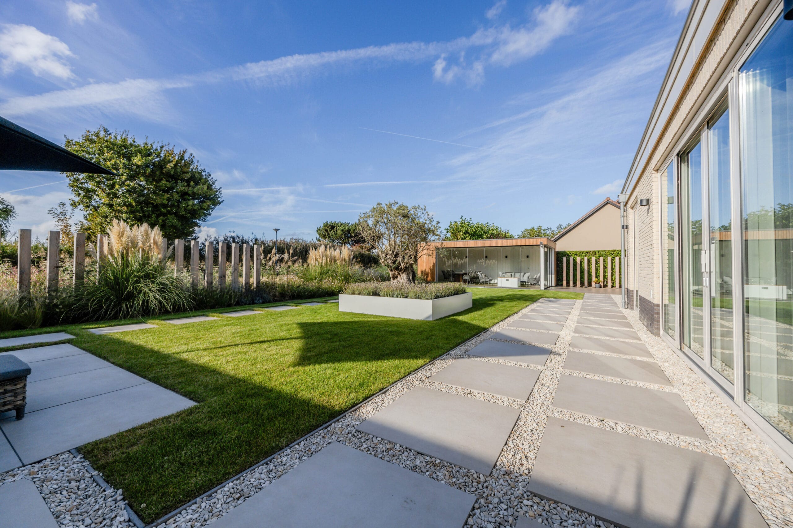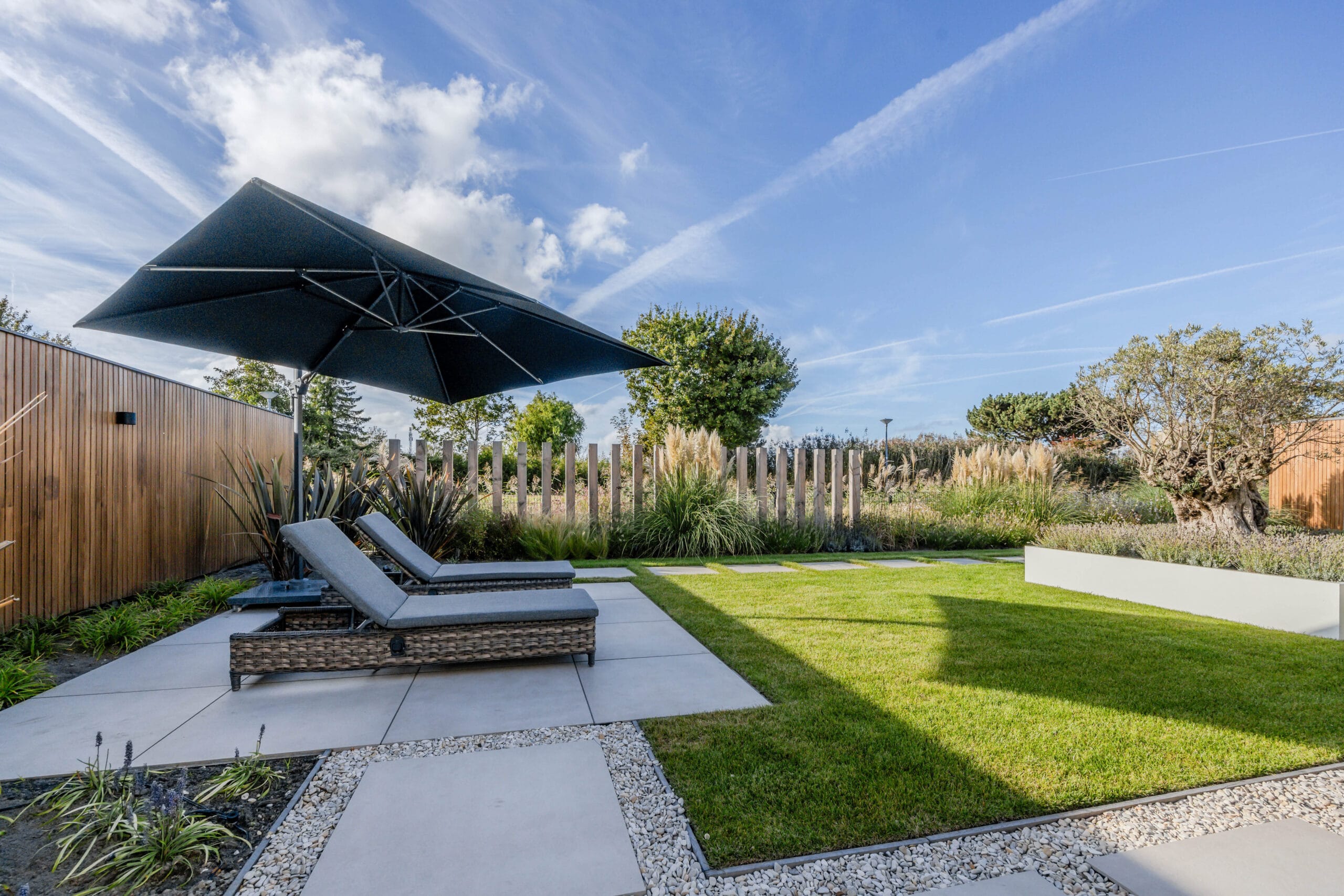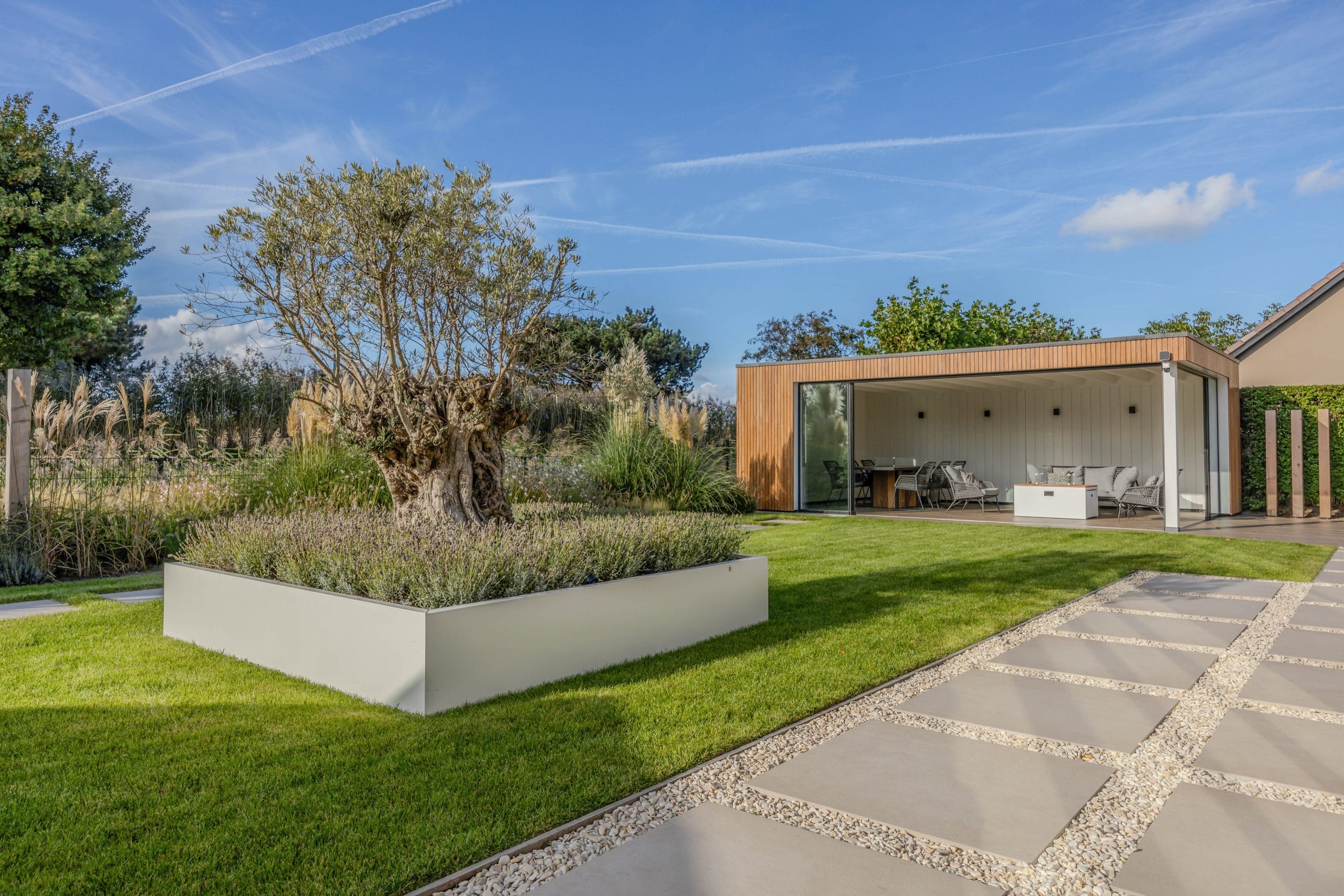Het eindresultaat is een tuin met een sterke structuur, een warme uitstraling en een hoogwaardige afwerking. De bewoners hebben nu een buitenruimte waar ze kunnen ontspannen, opbergen, genieten van groen én comfortabel buiten kunnen leven dankzij de veranda. Een tuin die klaar is voor jarenlang plezier.
