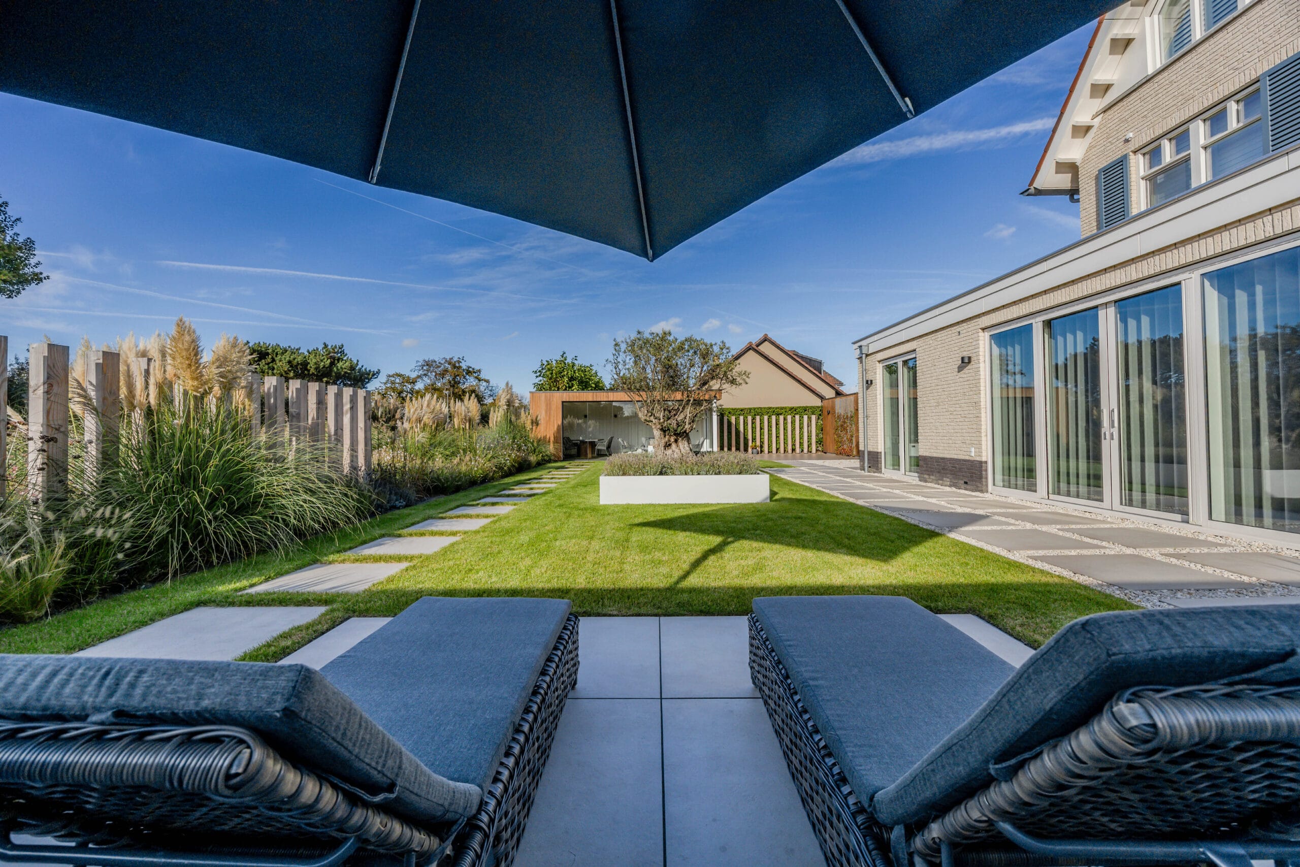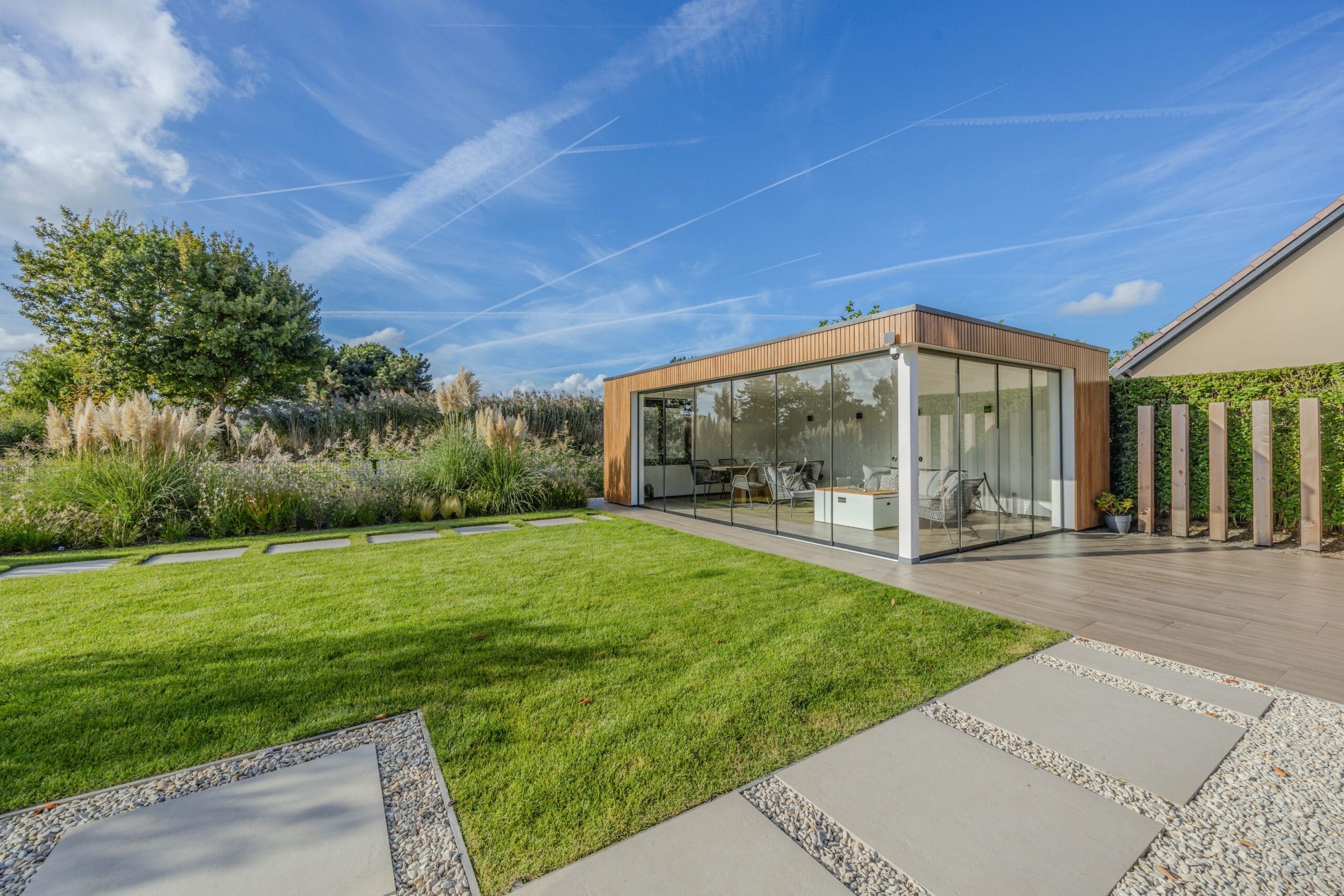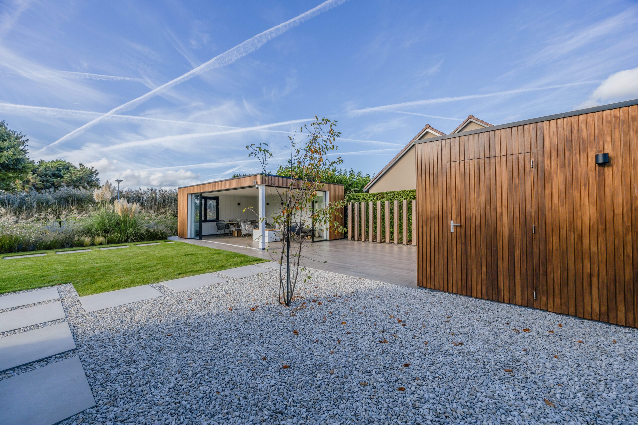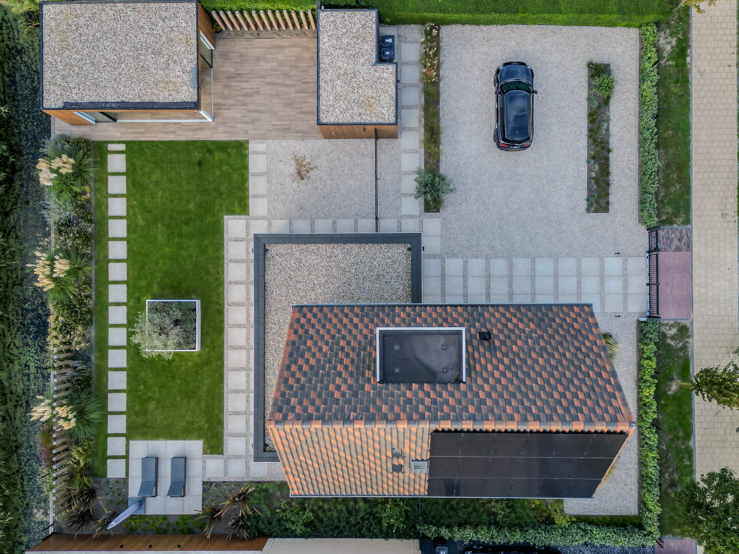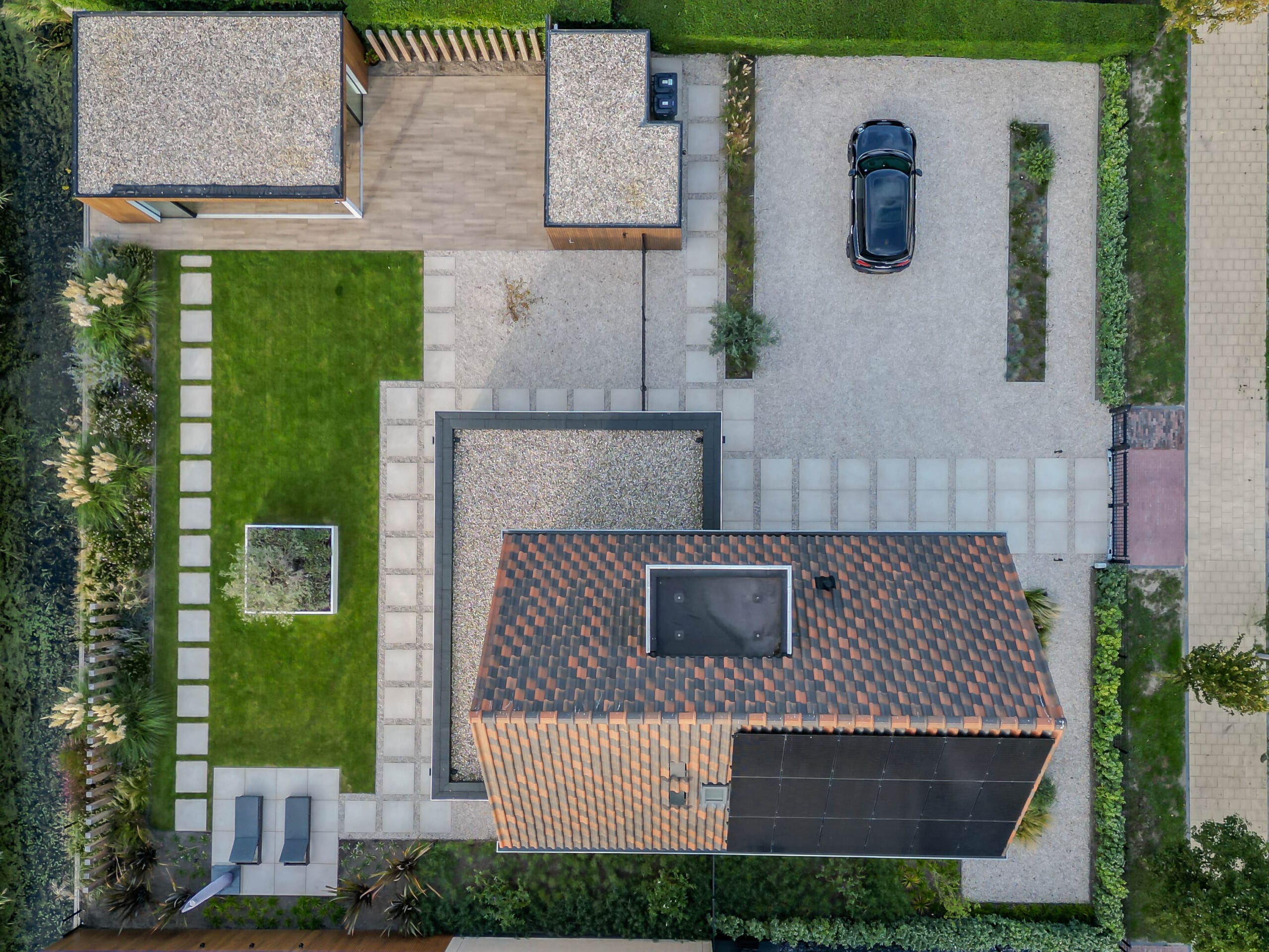 Het eindresultaat is een tuin met een sterke structuur, een warme uitstraling en een hoogwaardige afwerking. De bewoners hebben nu een buitenruimte waar ze kunnen ontspannen, opbergen, genieten van groen én comfortabel buiten kunnen leven dankzij de veranda. Een tuin die klaar is voor jarenlang plezier.