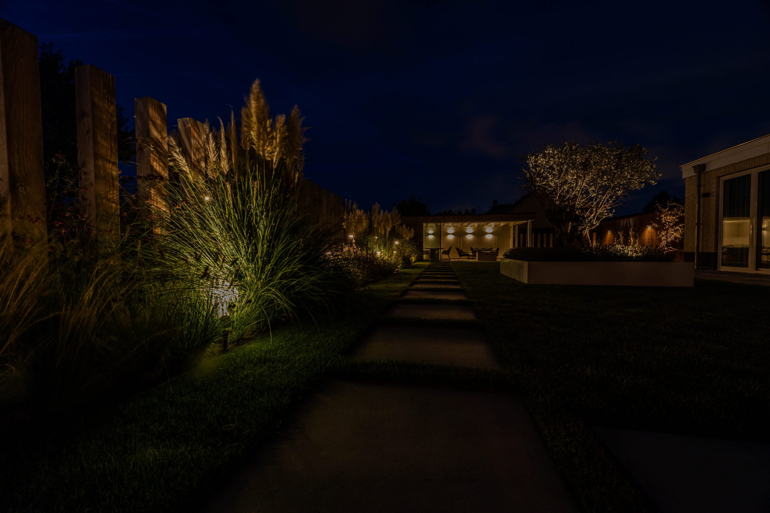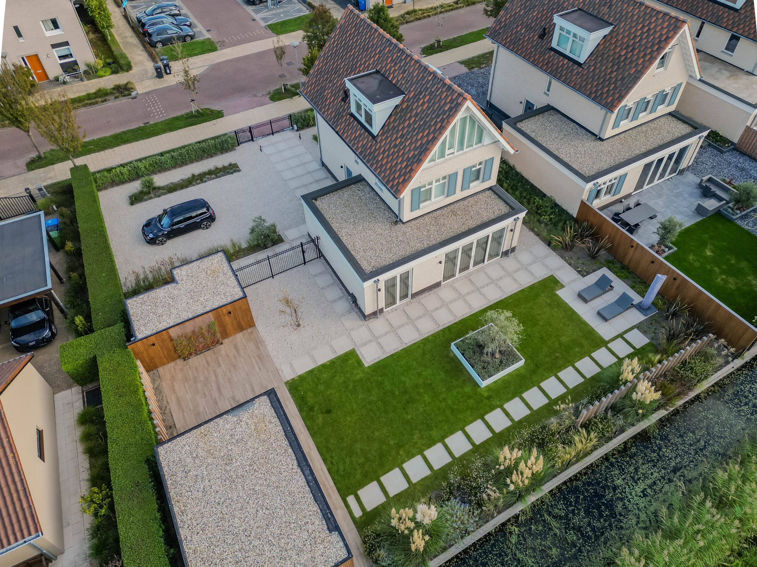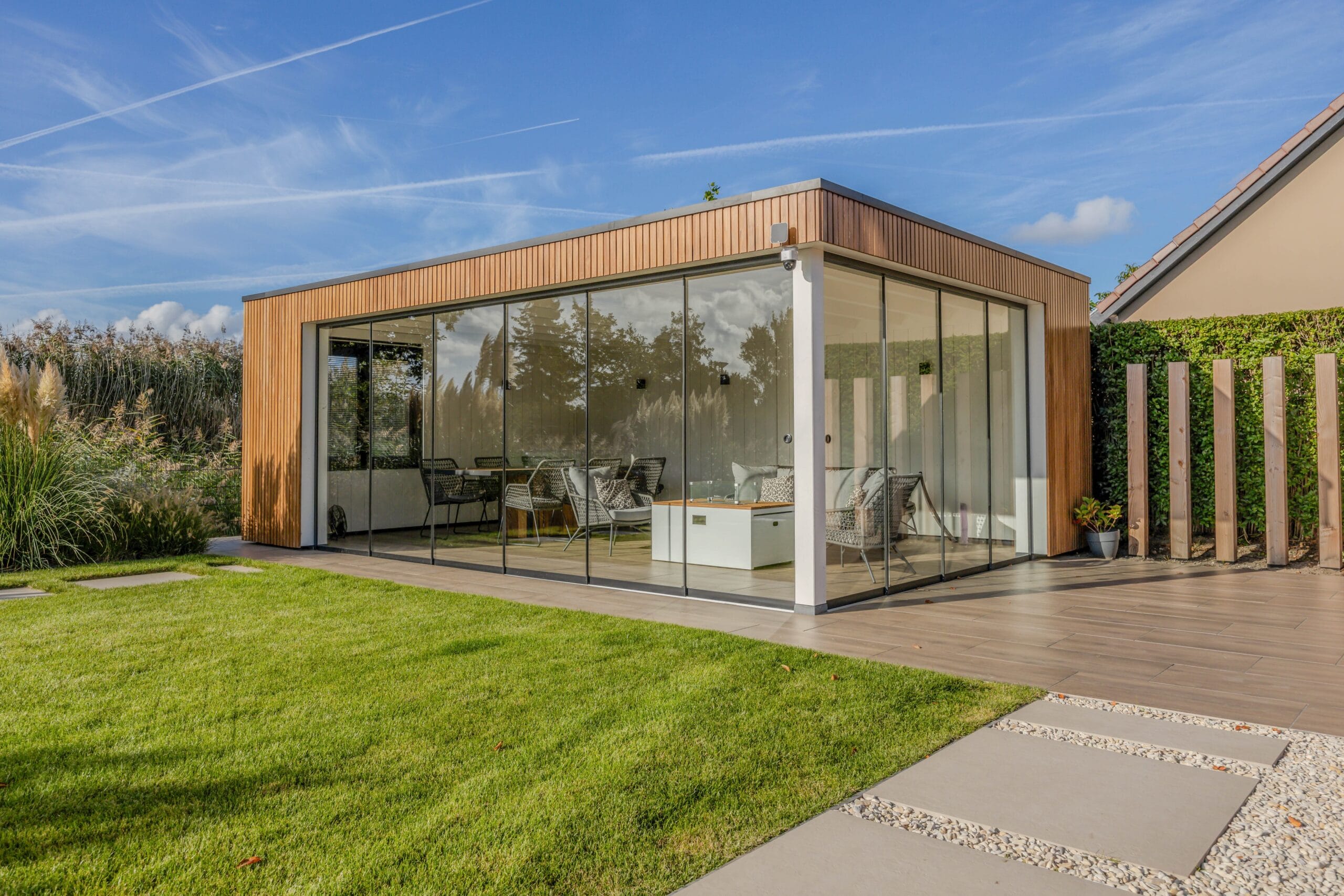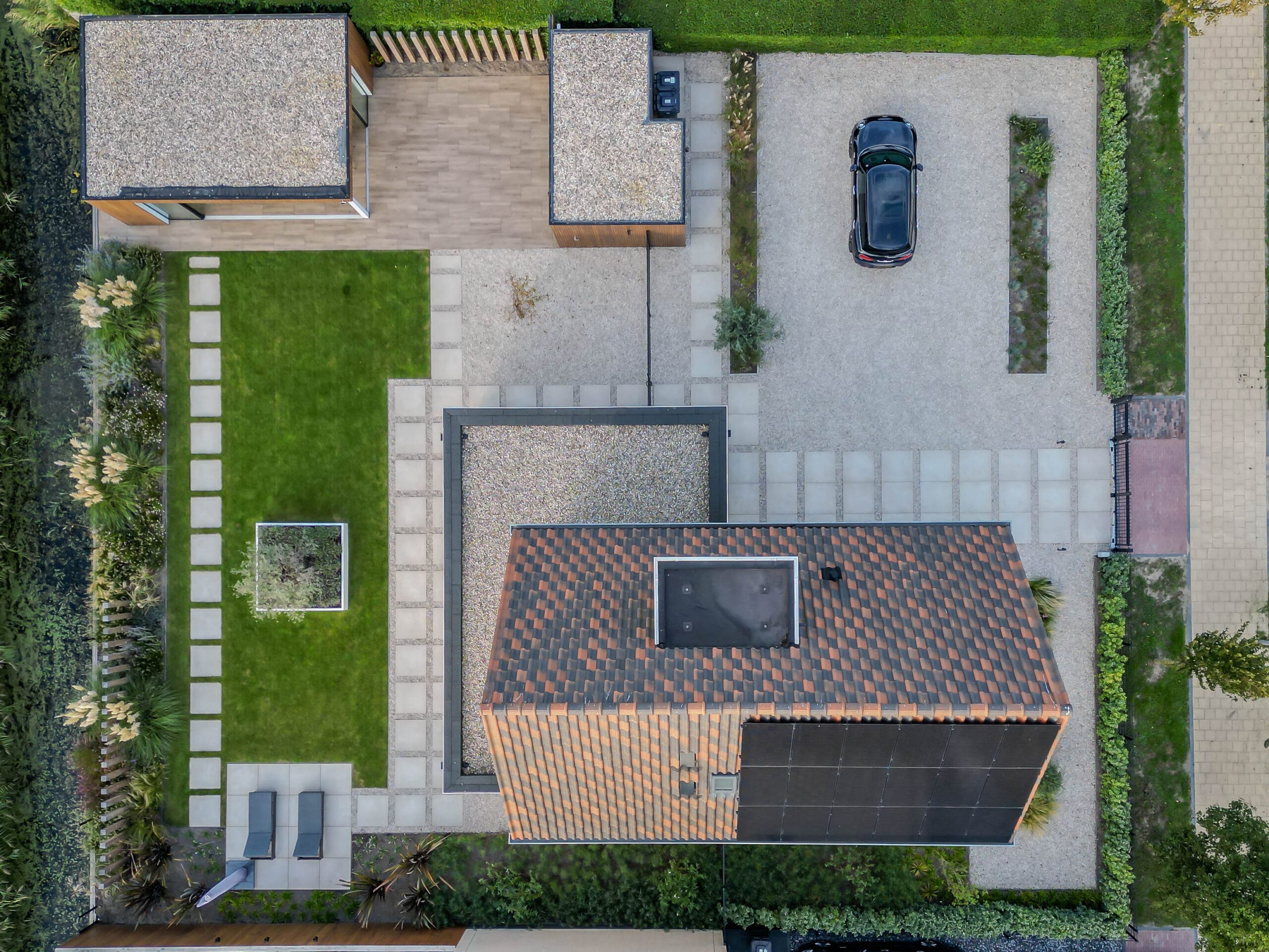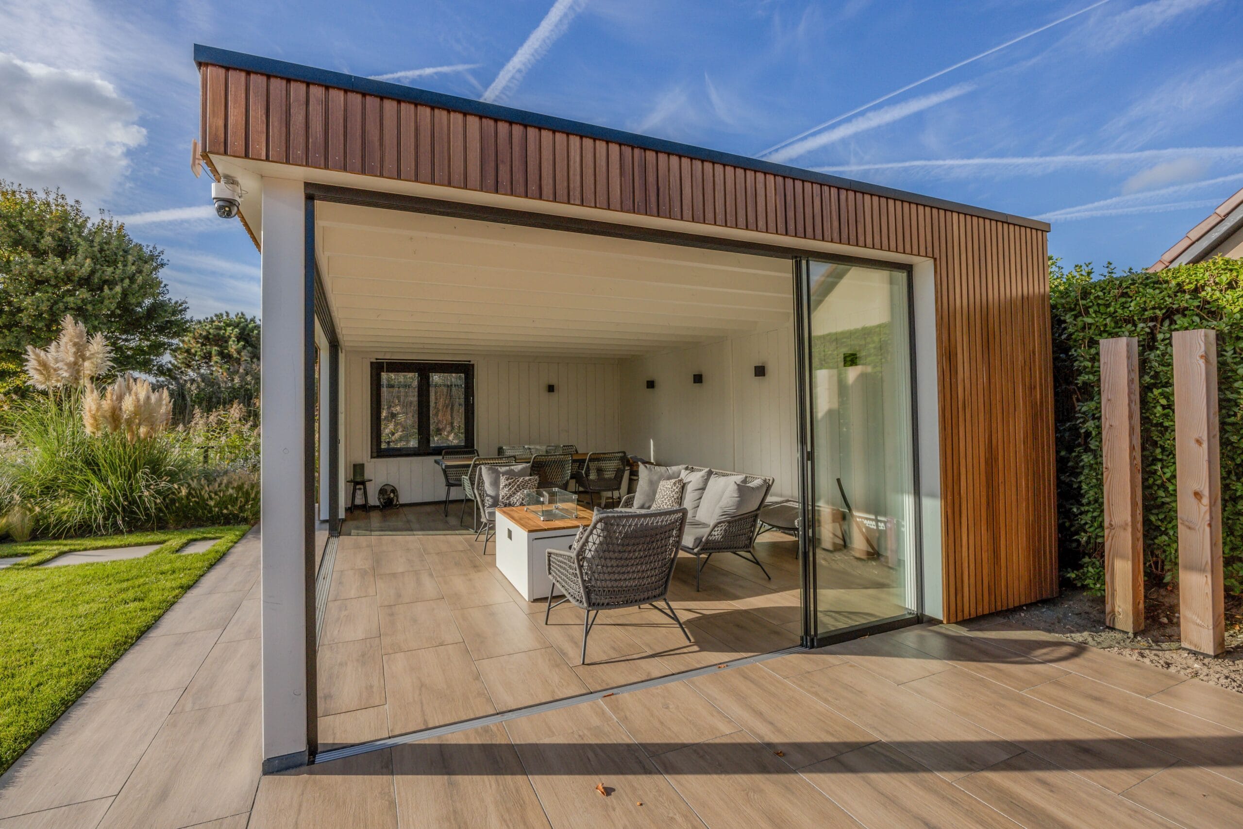 Het eindresultaat is een tuin met een sterke structuur, een warme uitstraling en een hoogwaardige afwerking. De bewoners hebben nu een buitenruimte waar ze kunnen ontspannen, opbergen, genieten van groen én comfortabel buiten kunnen leven dankzij de veranda. Een tuin die klaar is voor jarenlang plezier.
