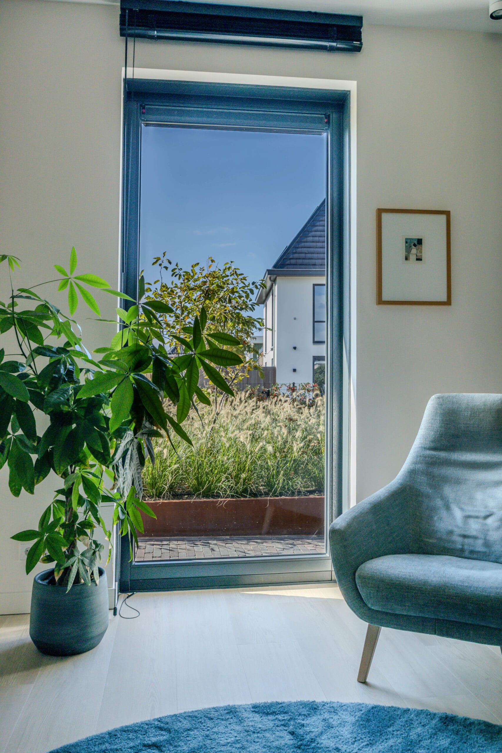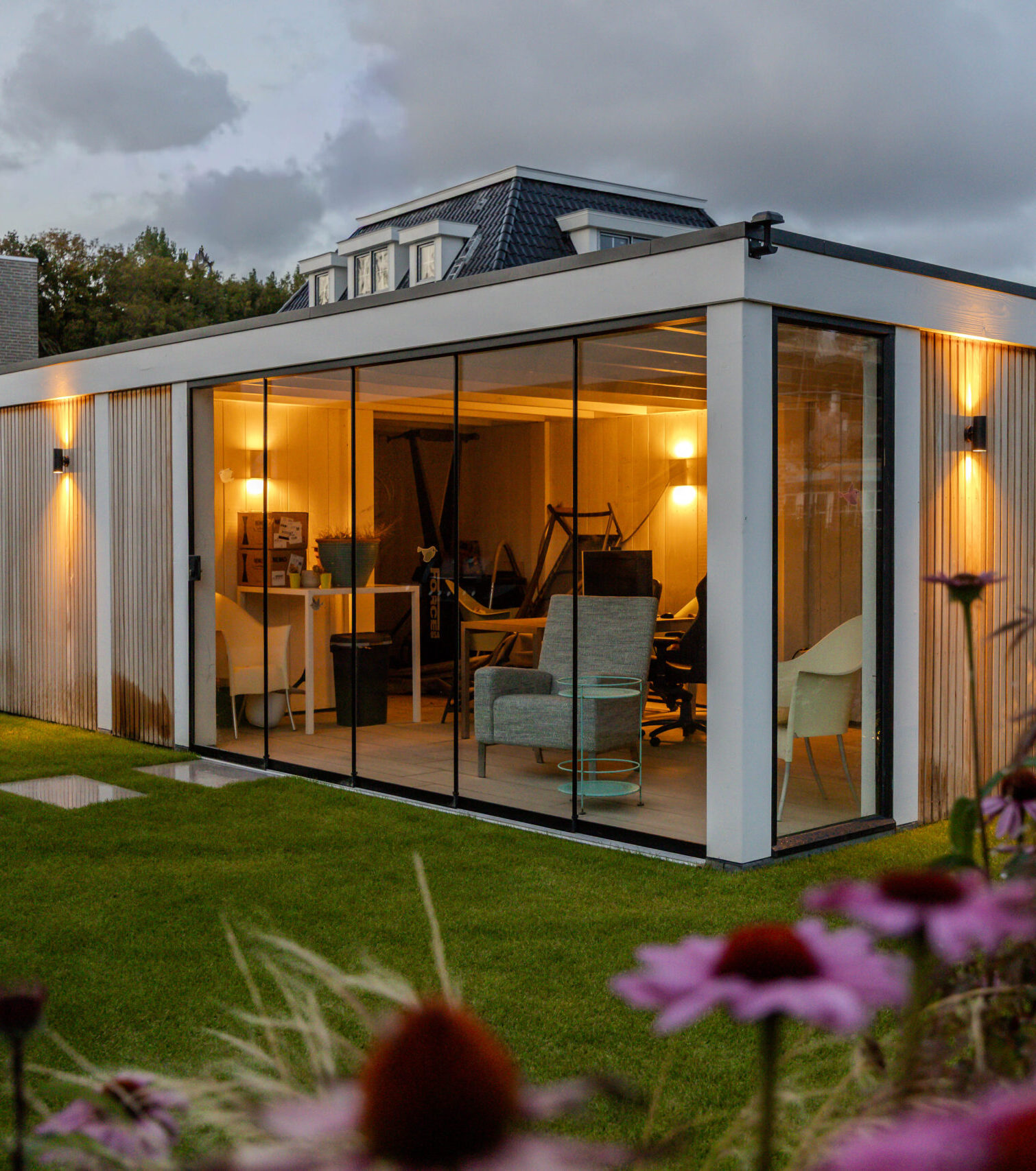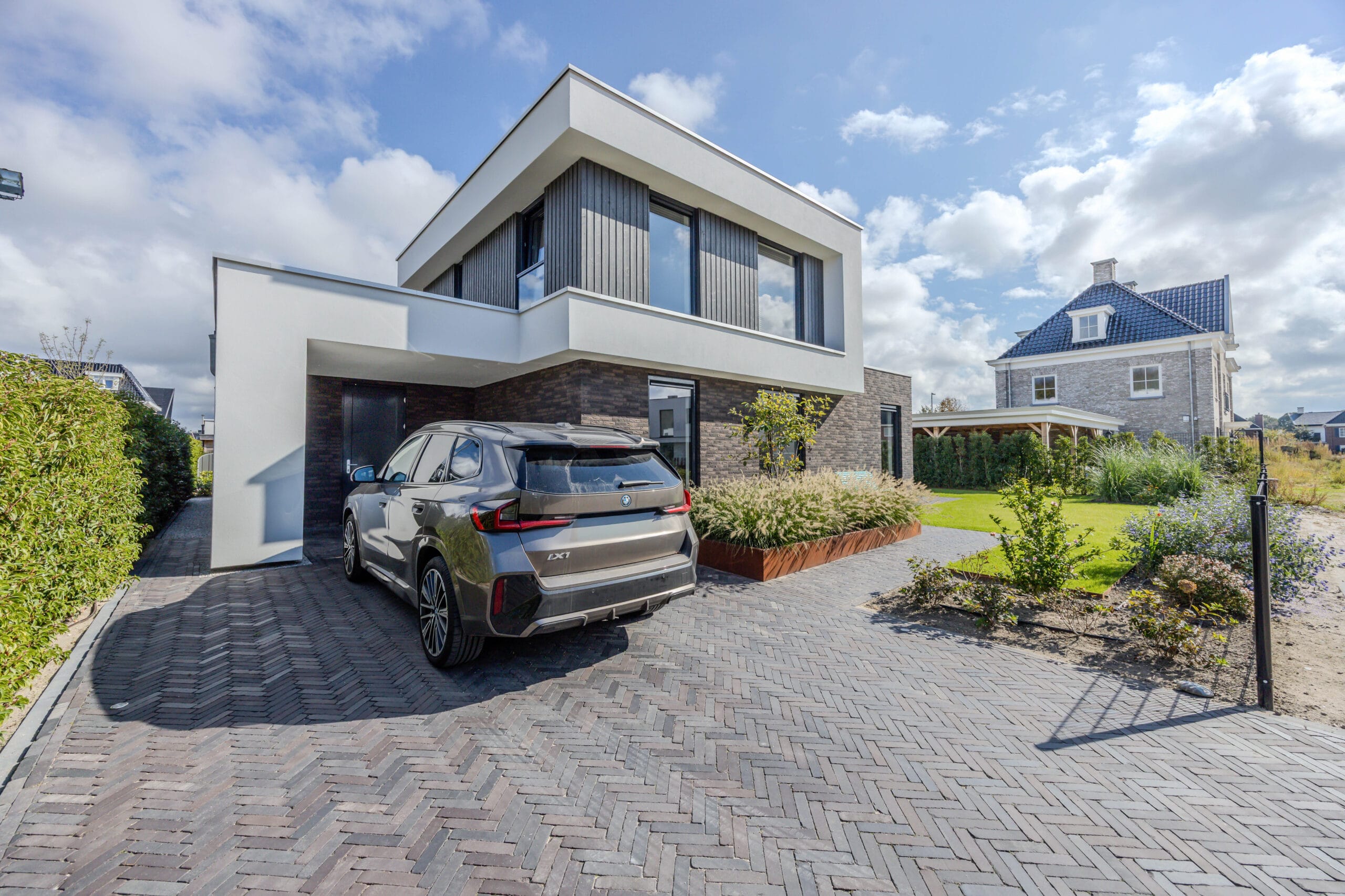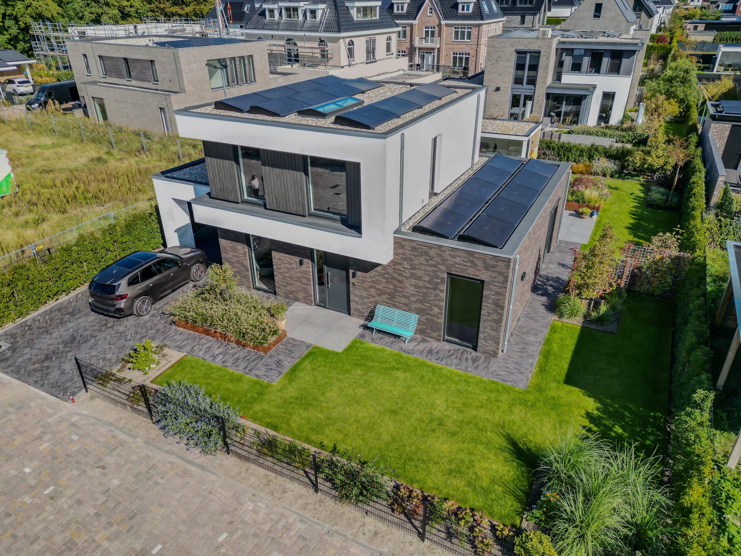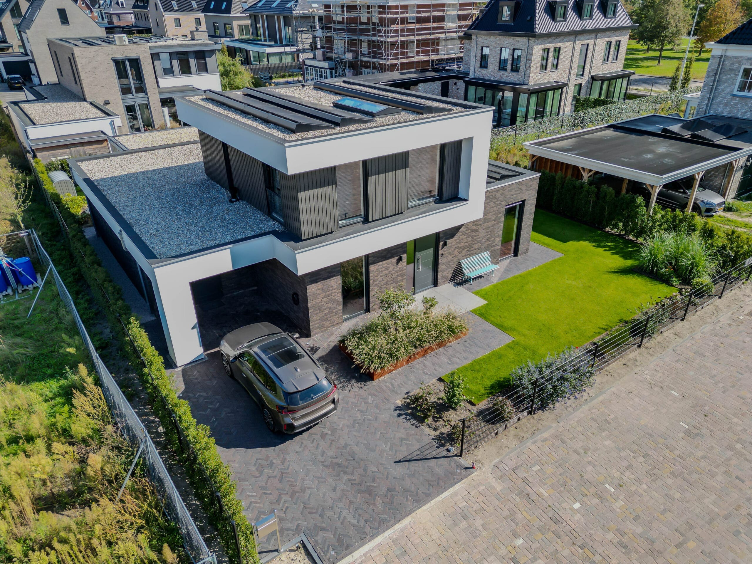 De bewoners wilden een onderhoudsvriendelijke tuin waarin het hele gezin zich thuis voelt: met ruimte om te ontspannen, te spelen en te genieten. Belangrijke wensen waren een robuuste veranda met glazen schuifwanden, een veilige speelplek met trampoline, een strakke oprit én voldoende groen om de tuin warm en levendig te houden.