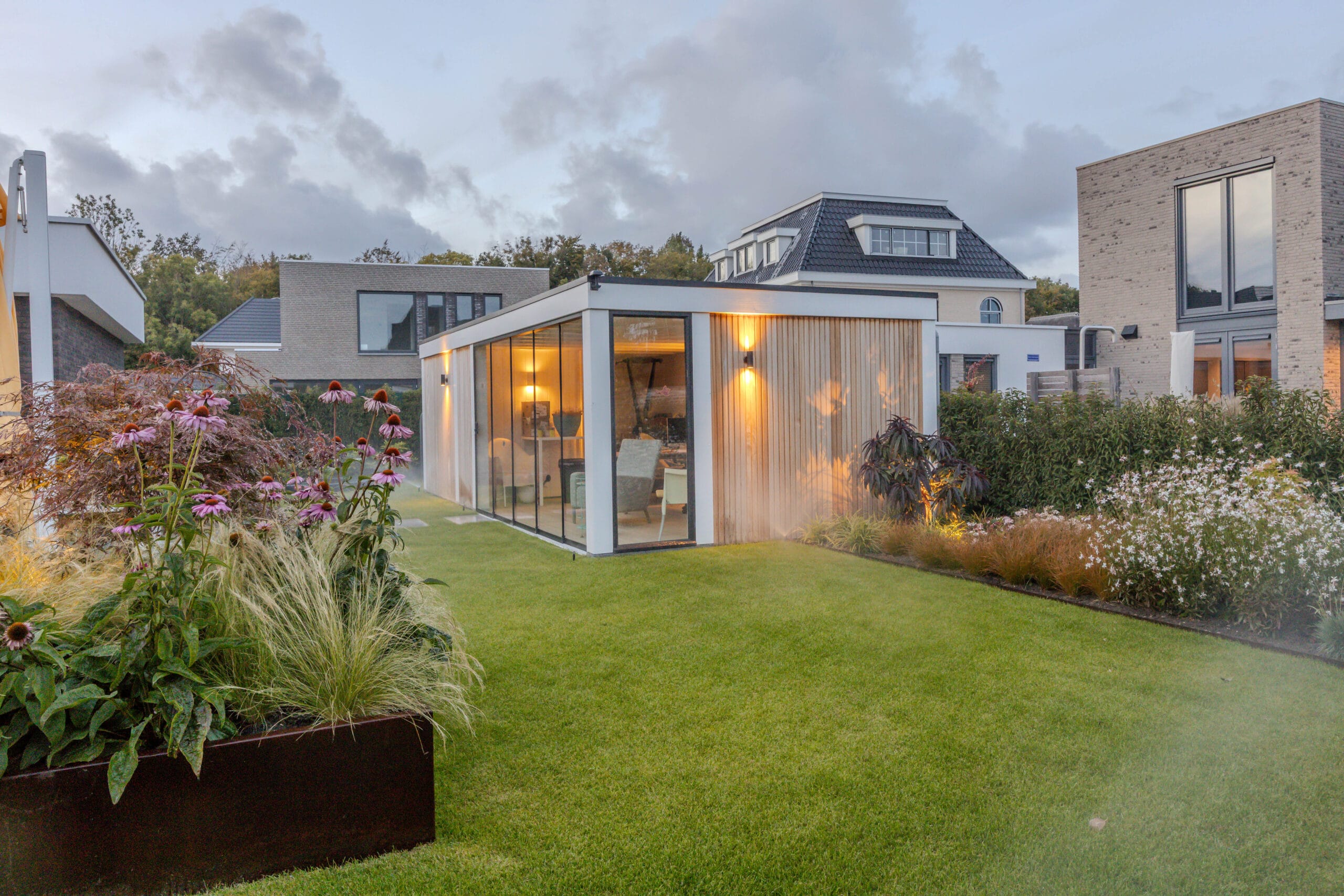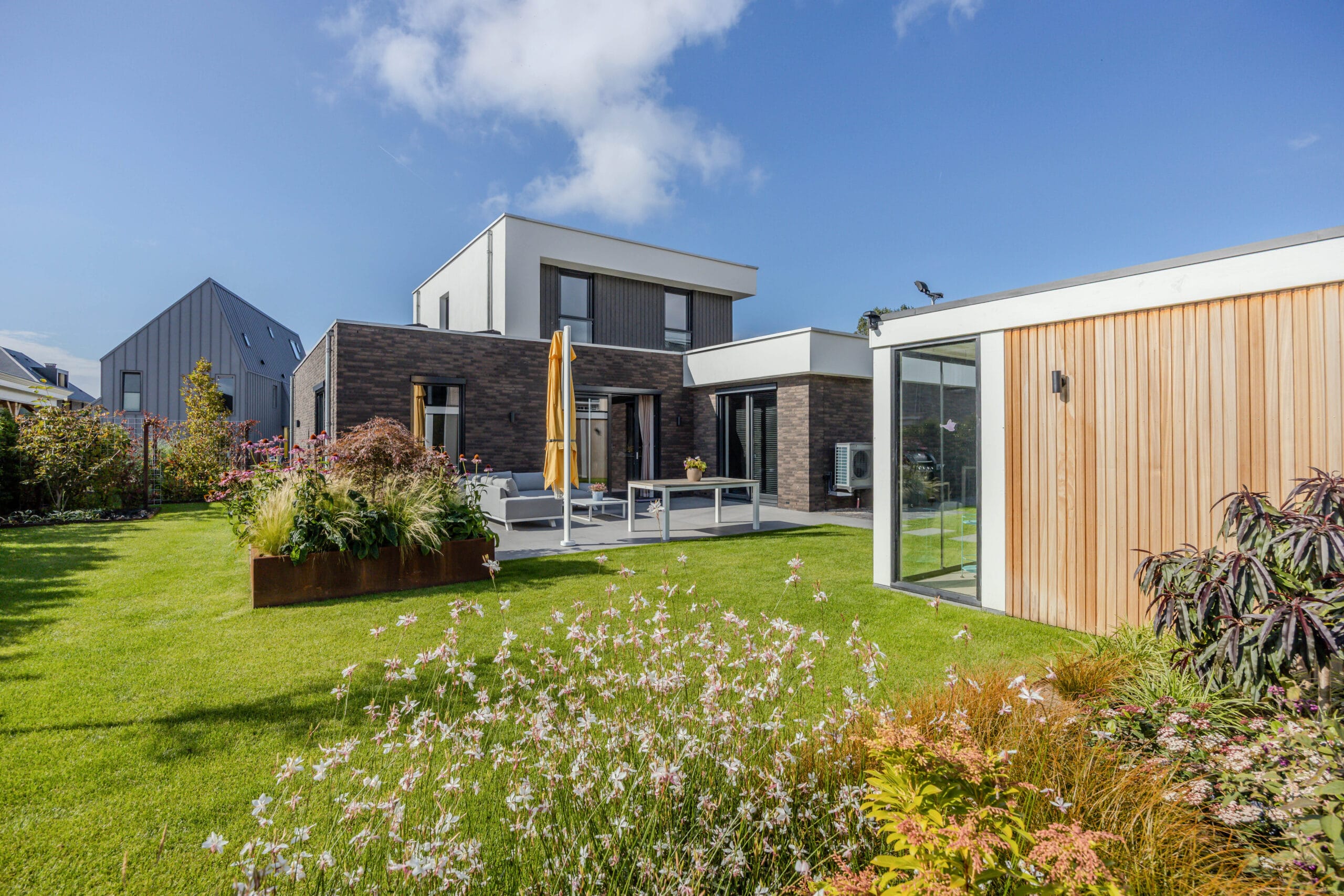Het resultaat is een onderhoudsarme, luxe tuin waarin spelen, ontspannen en genieten hand in hand gaan. De combinatie van hoogwaardige materialen, een strak lijnenspel en slimme technieken zorgt voor een buitenruimte die er niet alleen prachtig uitziet, maar ook praktisch is in gebruik. Een tuin die klaar is voor elk seizoen.