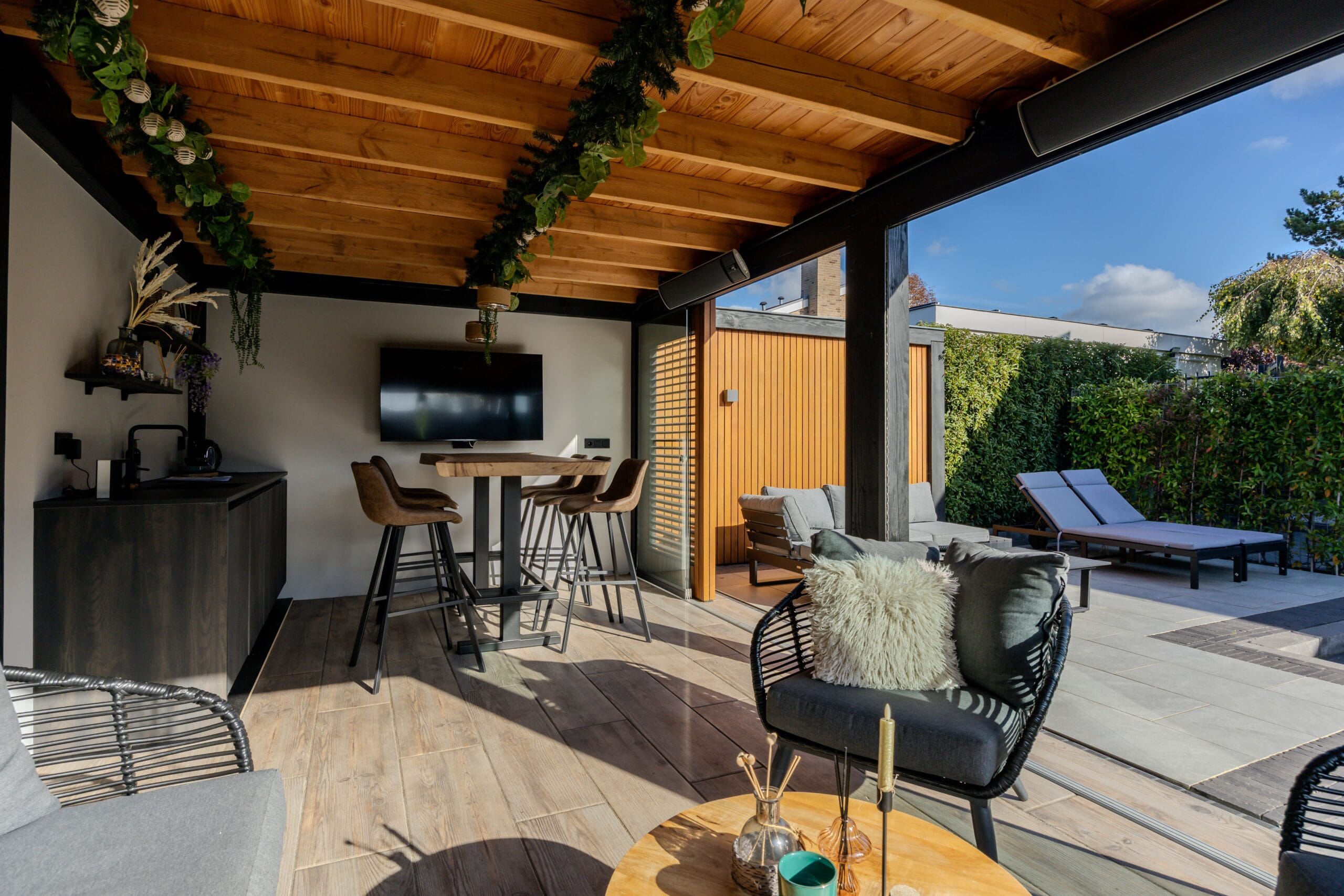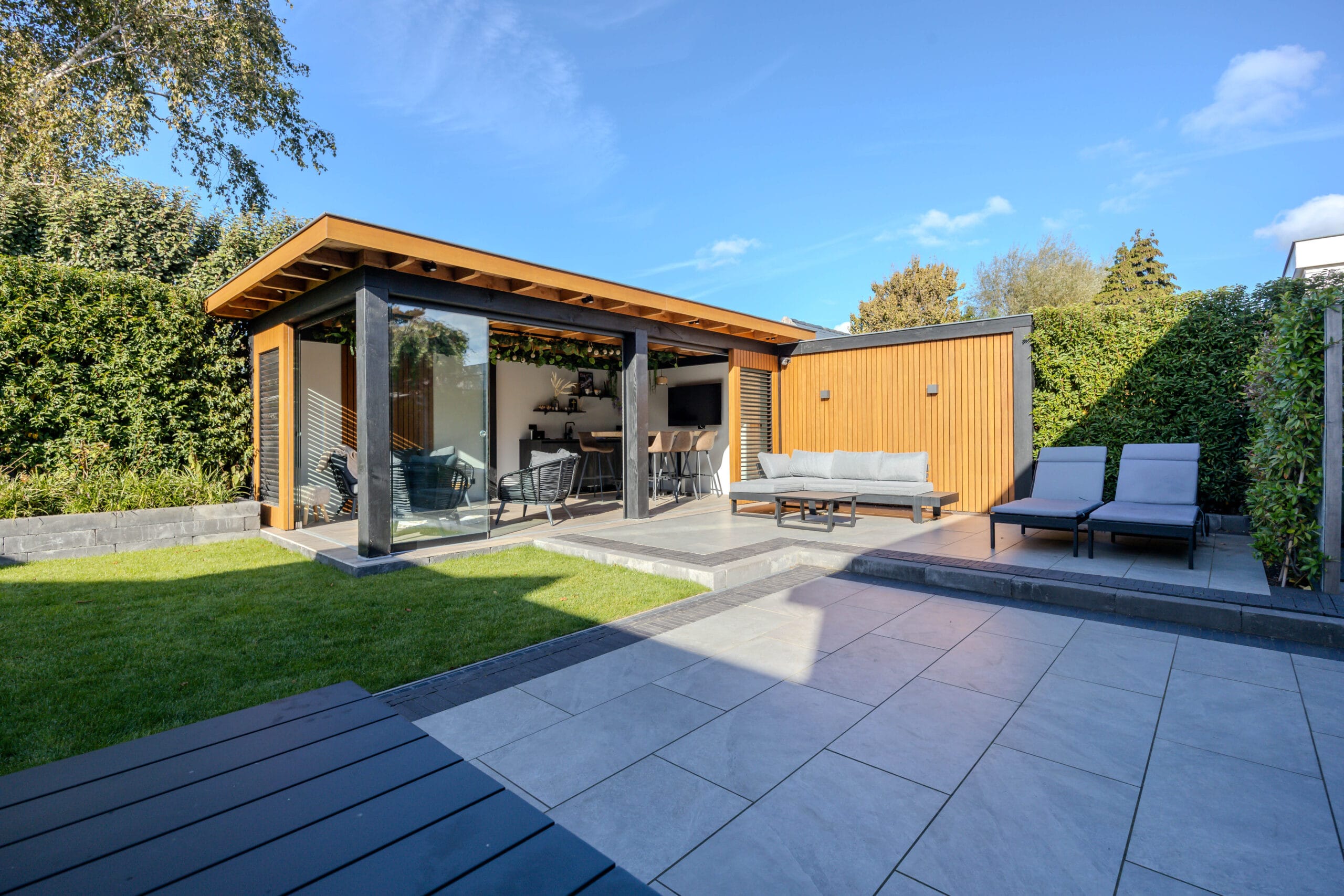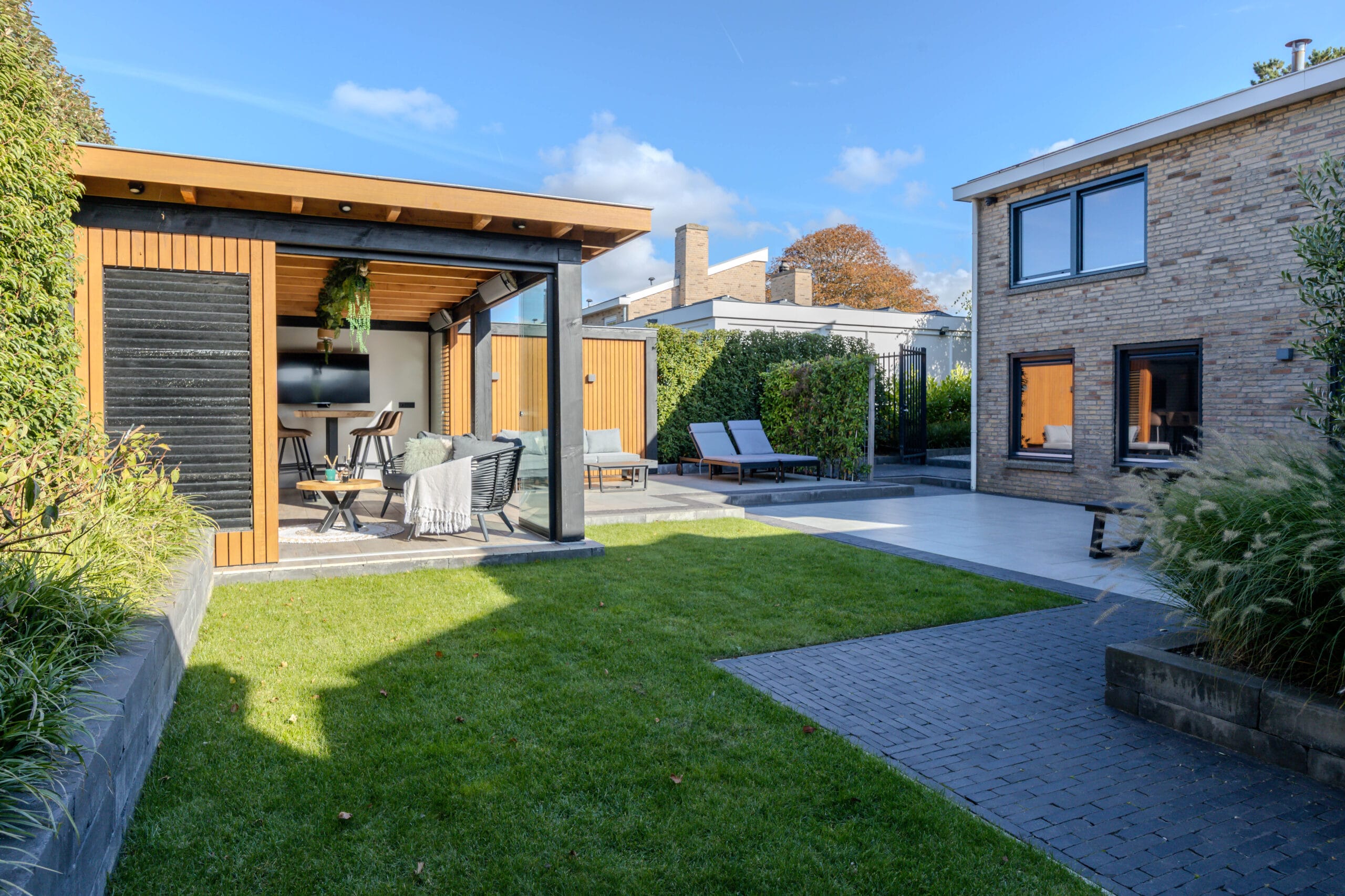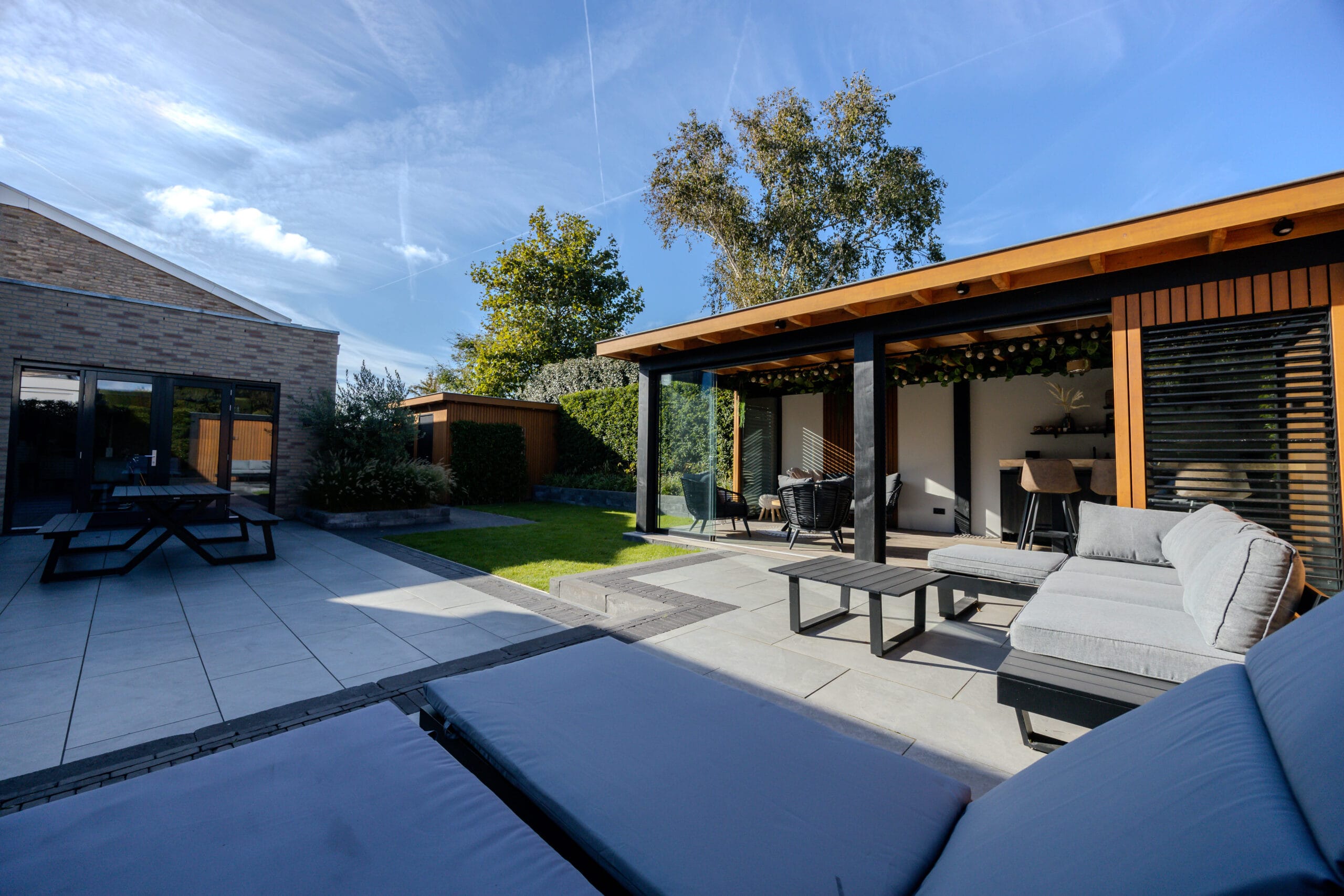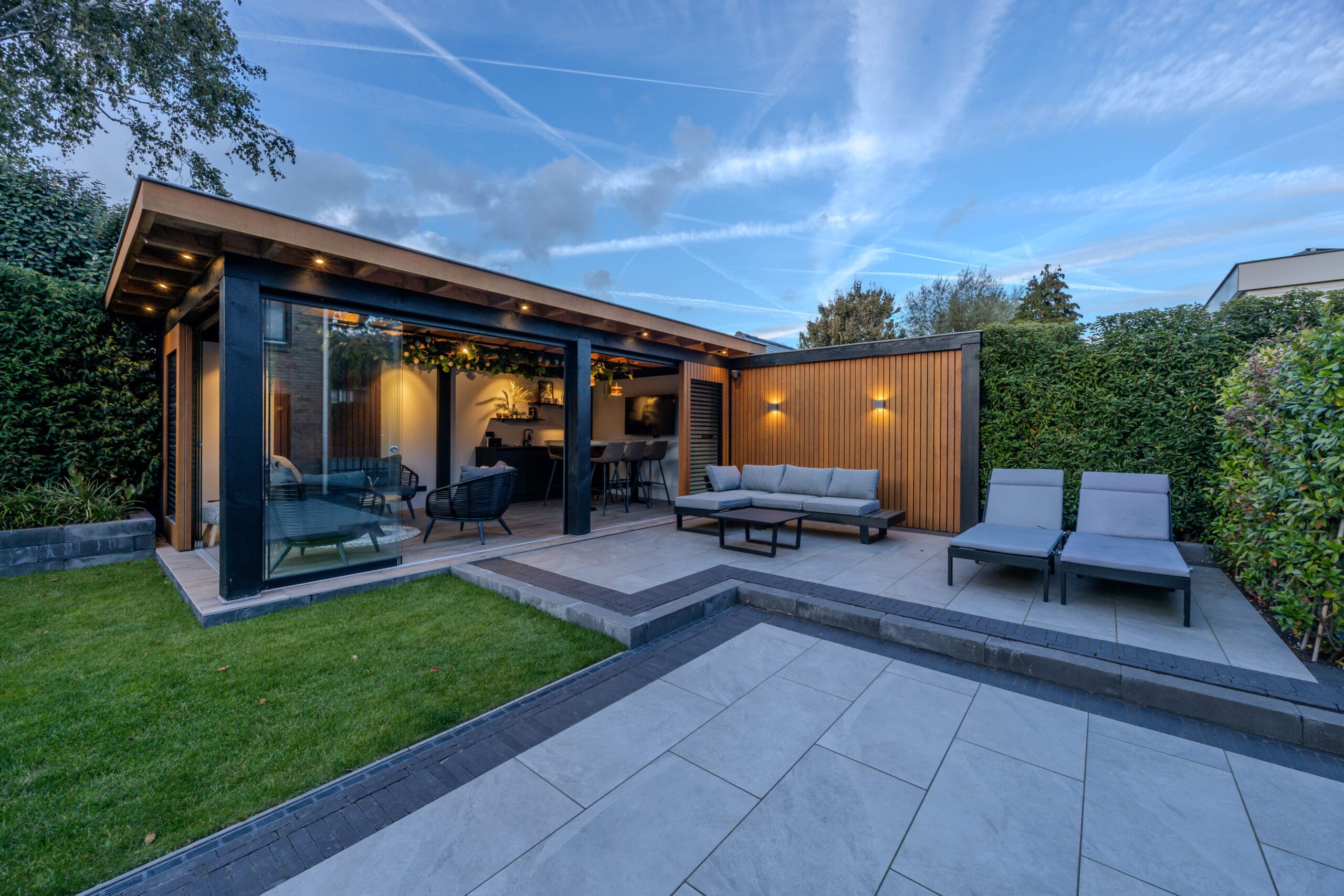 Het eindresultaat is een tuin met prachtige hoogteverschillen, een warme uitstraling en een luxe veranda als hart van de buitenruimte. De combinatie van solide materialen, groenstructuren en doordachte verlichting maakt deze tuin modern, functioneel en klaar voor jarenlang plezier. Een tuin die de woning én de leefomgeving naar een hoger niveau tilt.