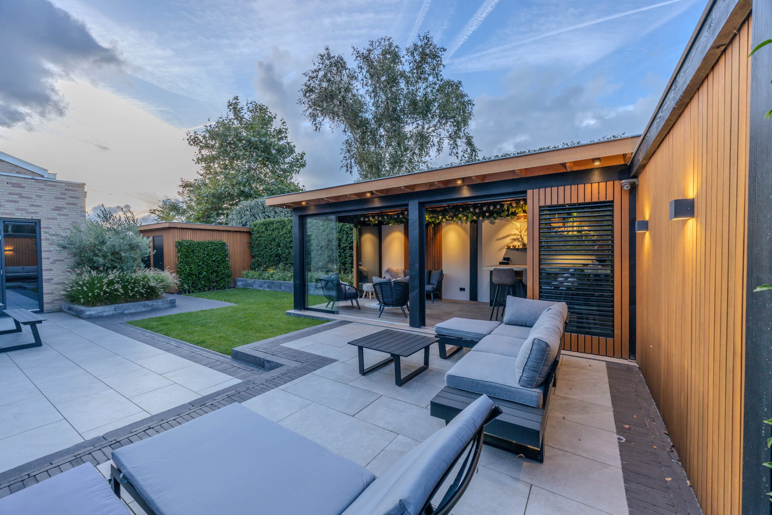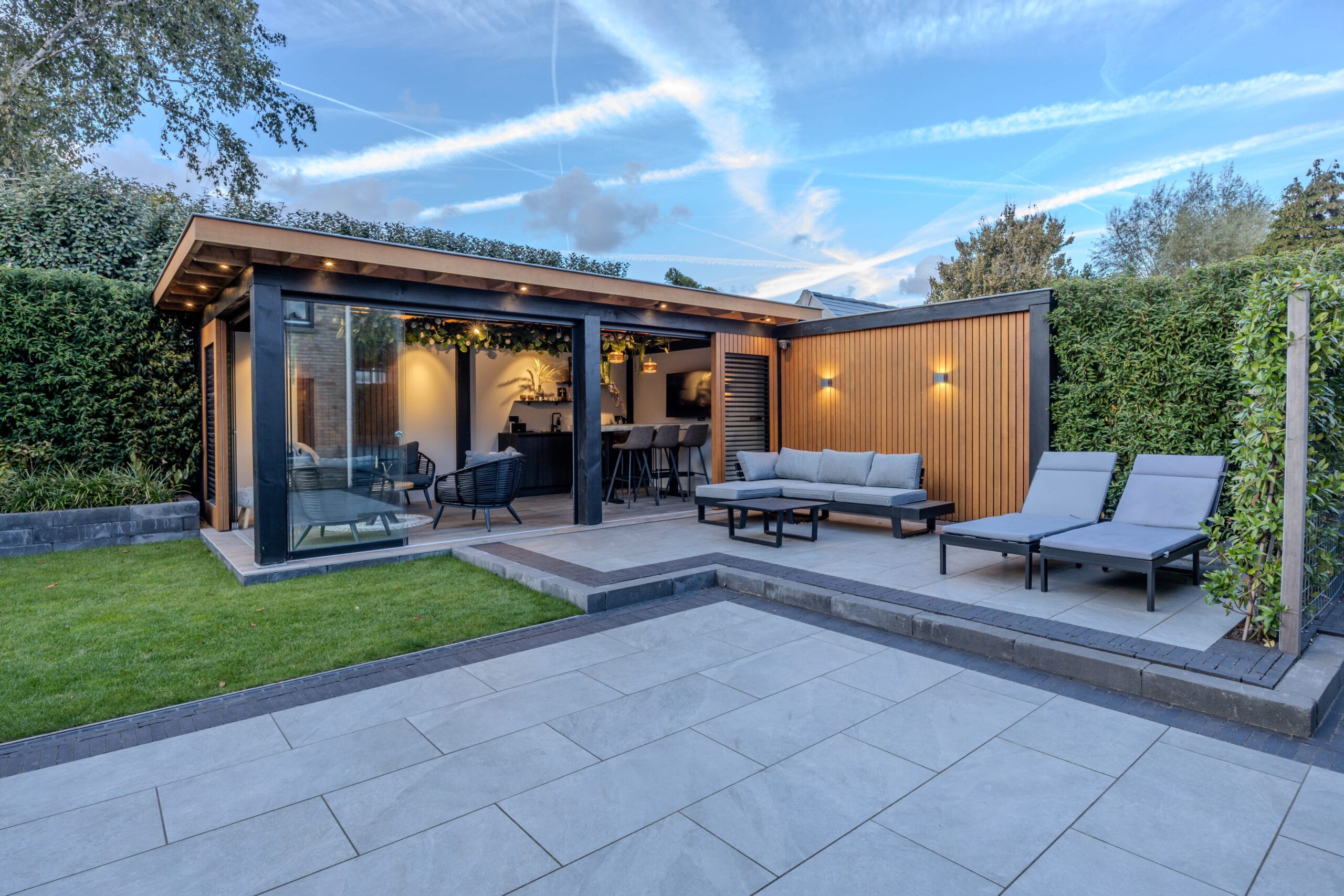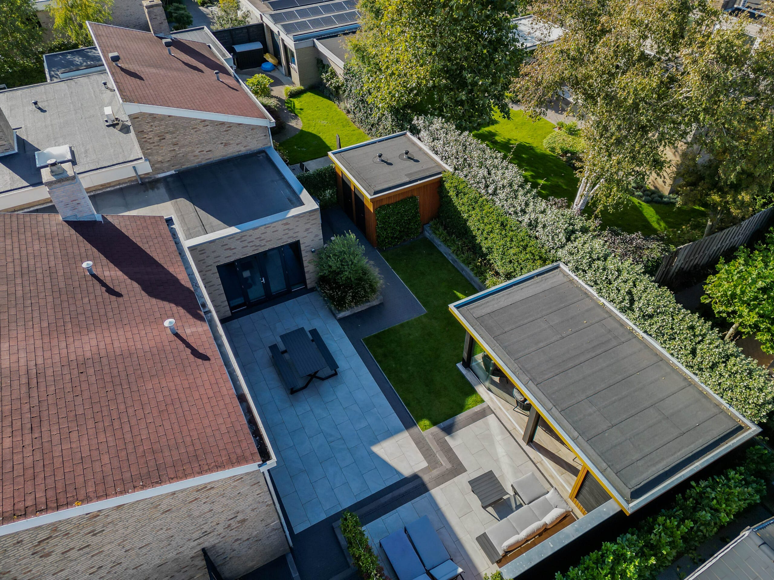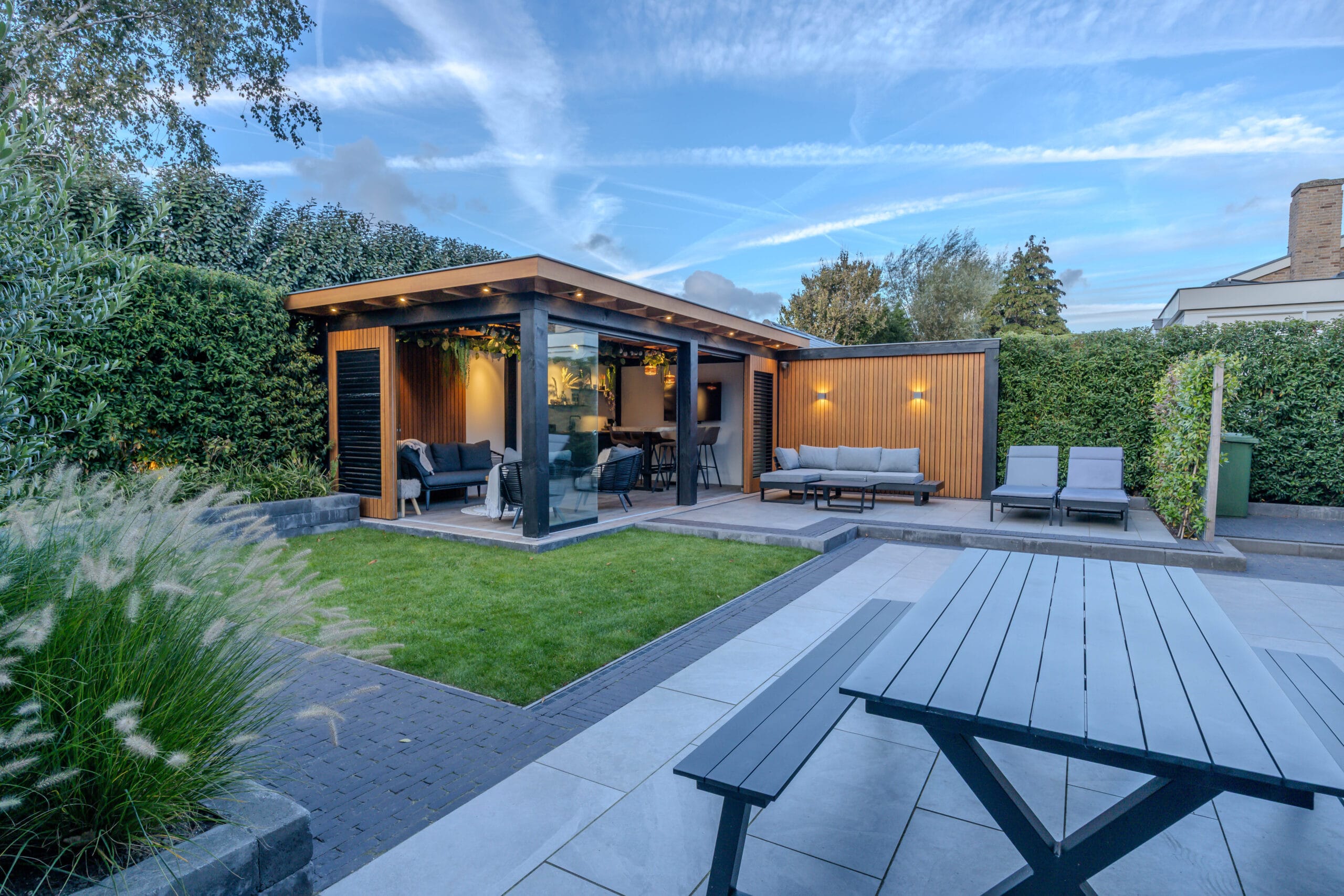 Het eindresultaat is een tuin met prachtige hoogteverschillen, een warme uitstraling en een luxe veranda als hart van de buitenruimte. De combinatie van solide materialen, groenstructuren en doordachte verlichting maakt deze tuin modern, functioneel en klaar voor jarenlang plezier. Een tuin die de woning én de leefomgeving naar een hoger niveau tilt.
