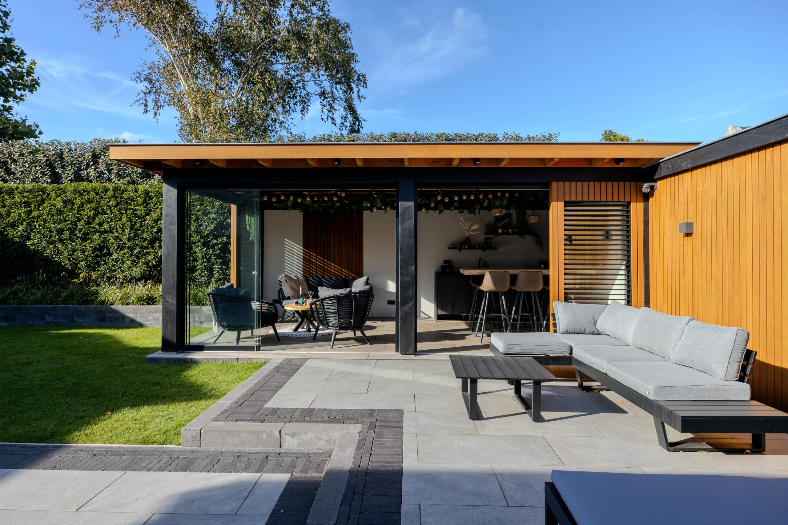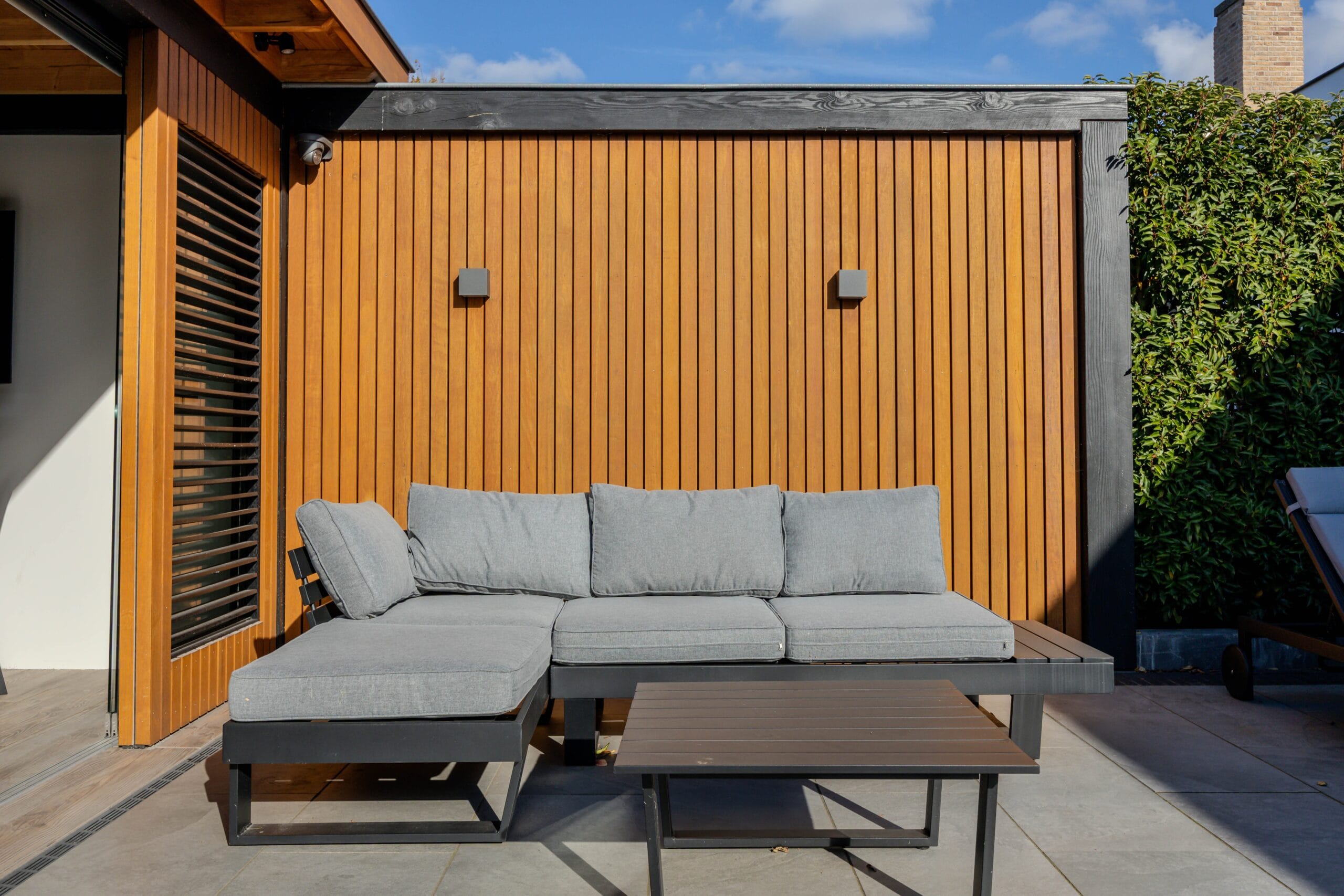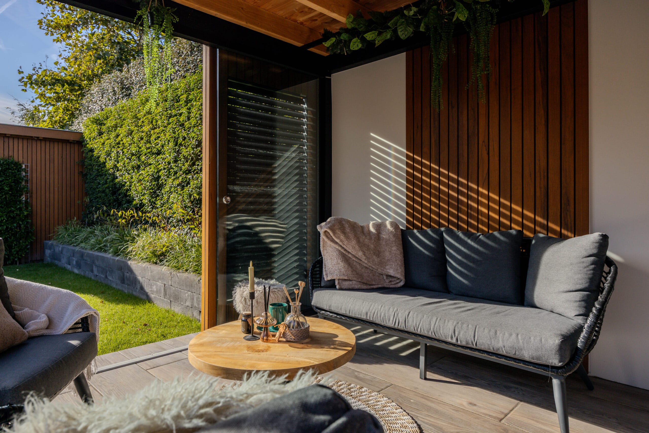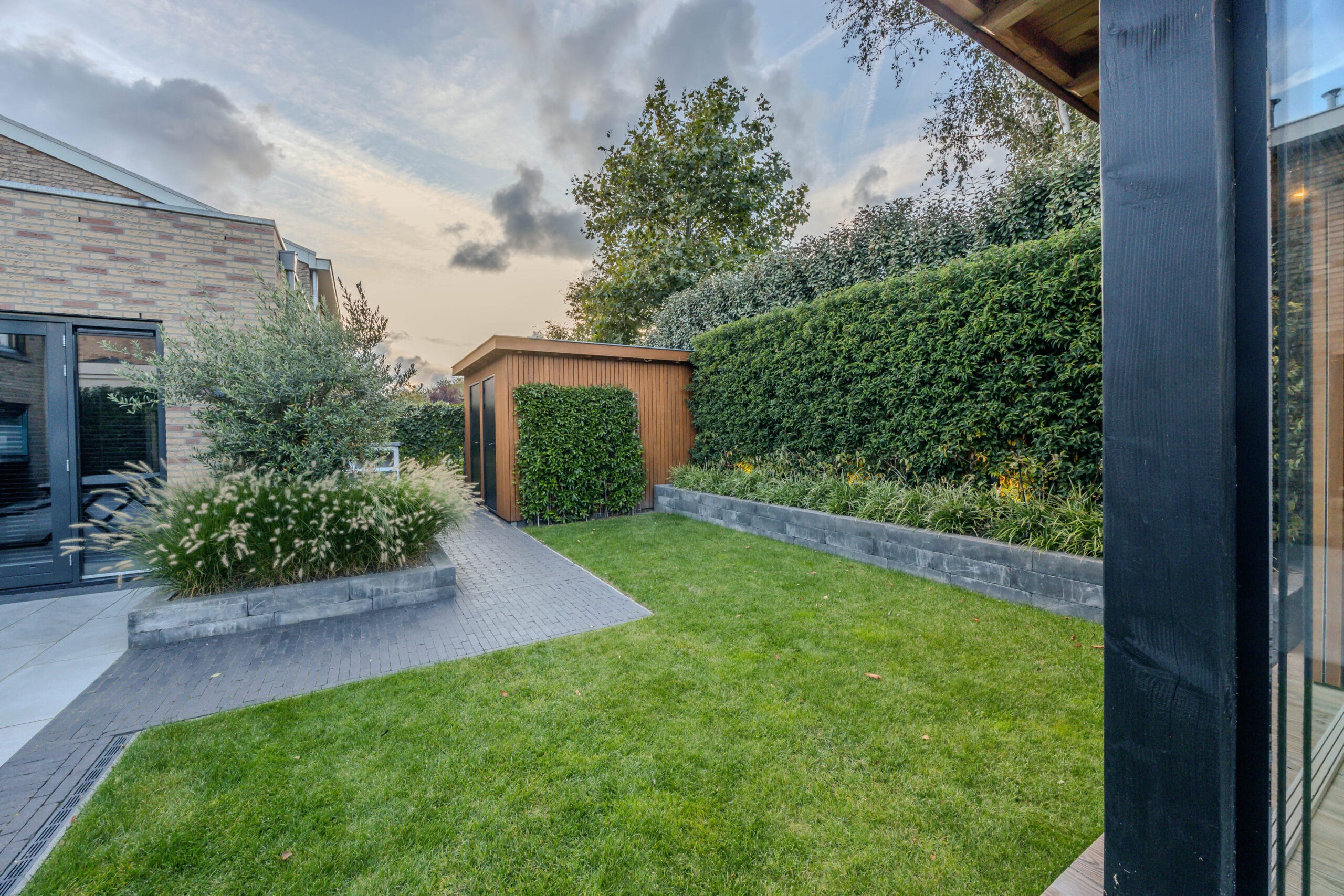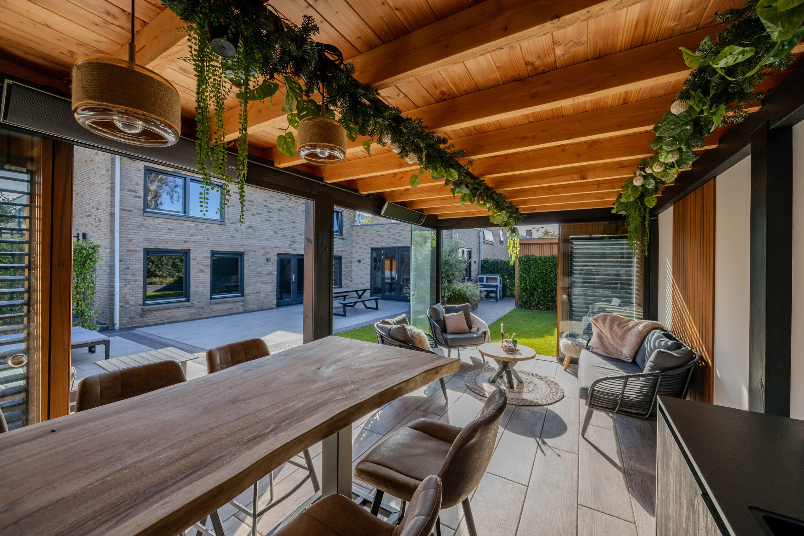 Het eindresultaat is een tuin met prachtige hoogteverschillen, een warme uitstraling en een luxe veranda als hart van de buitenruimte. De combinatie van solide materialen, groenstructuren en doordachte verlichting maakt deze tuin modern, functioneel en klaar voor jarenlang plezier. Een tuin die de woning én de leefomgeving naar een hoger niveau tilt.